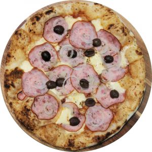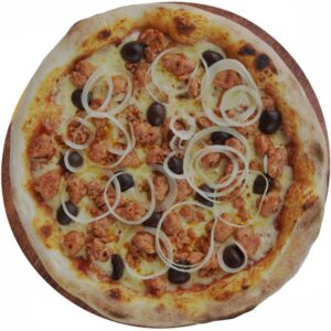 Tamanho único: Aprox. 35cm - 8 PedaçosMolho de tomates frescos, mozzarella, lombinho canadense, cebola, azeitonas pretas.