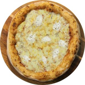 Tamanho único: Aprox. 35cm - 8 PedaçosMolho de tomates frescos, mozzarella, requeijão, gorgonzola, parmesão, orégano.