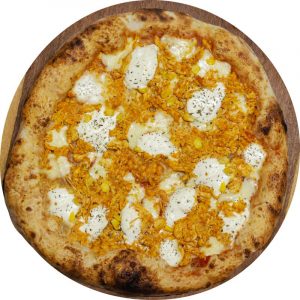 Tamanho único: Aprox. 35cm - 8 PedaçosMolho de tomates frescos, mozzarella, peito de frango desfiado, milho verde, requeijão.