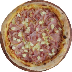 Tamanho único: Aprox. 35cm - 8 PedaçosMolho de tomates frescos, mozzarella, abacaxi grelhado, lombo canadense, bacon.