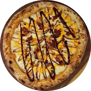 Tamanho único: Aprox. 35cm - 8 PedaçosMolho de tomates frescos, mozzarella, frango grelhado ao molho barbecue, cheddar, bacon bits