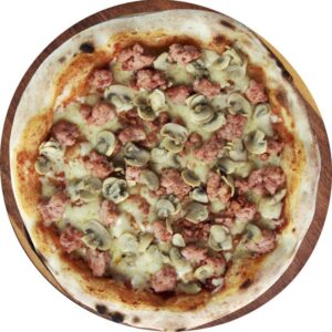 Tamanho único: Aprox. 35cm - 8 PedaçosMolho de tomates frescos, mozzarella, linguiça calabresa artesanal, cogumelos Paris à provençal, orégano.